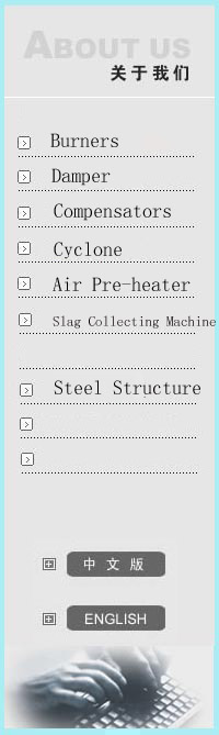 Co-operated with Shanghai Boiler Works, the company upgrades technology and increases production capacities. The main products are: S2000t/h(600MW) 、 2000t/h ( 600MW )、 1025t/h ( 300MW )、 425t/h ( 125MW )、 220t/h ( 50MW )coal, oil, gas, mixing gas types of burners and its accessories, such as coal powder pipe gate door, baffle door, boiler steel structures,3D compensators, blade type slag collecting machine, CFB cyclone, rotating air pre-heater, coal silos, powder silos and inner and outer protection doors of furnace etc. |